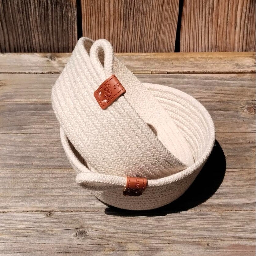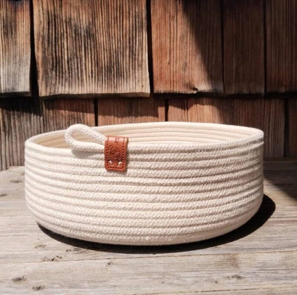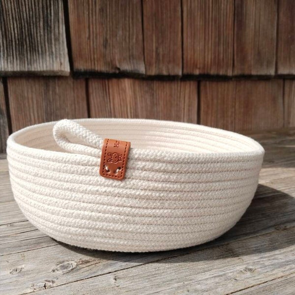 Dieses Körbchen aus Baumwollseil ist nicht nur ein praktischer Ordnungshelfer, sondern auch ein echter Hingucker in deinem Zuhause. Ob Krimskrams, Süßigkeiten oder das ewige Sammelsurium an Schlüsseln — alles findet hier seinen Platz!
